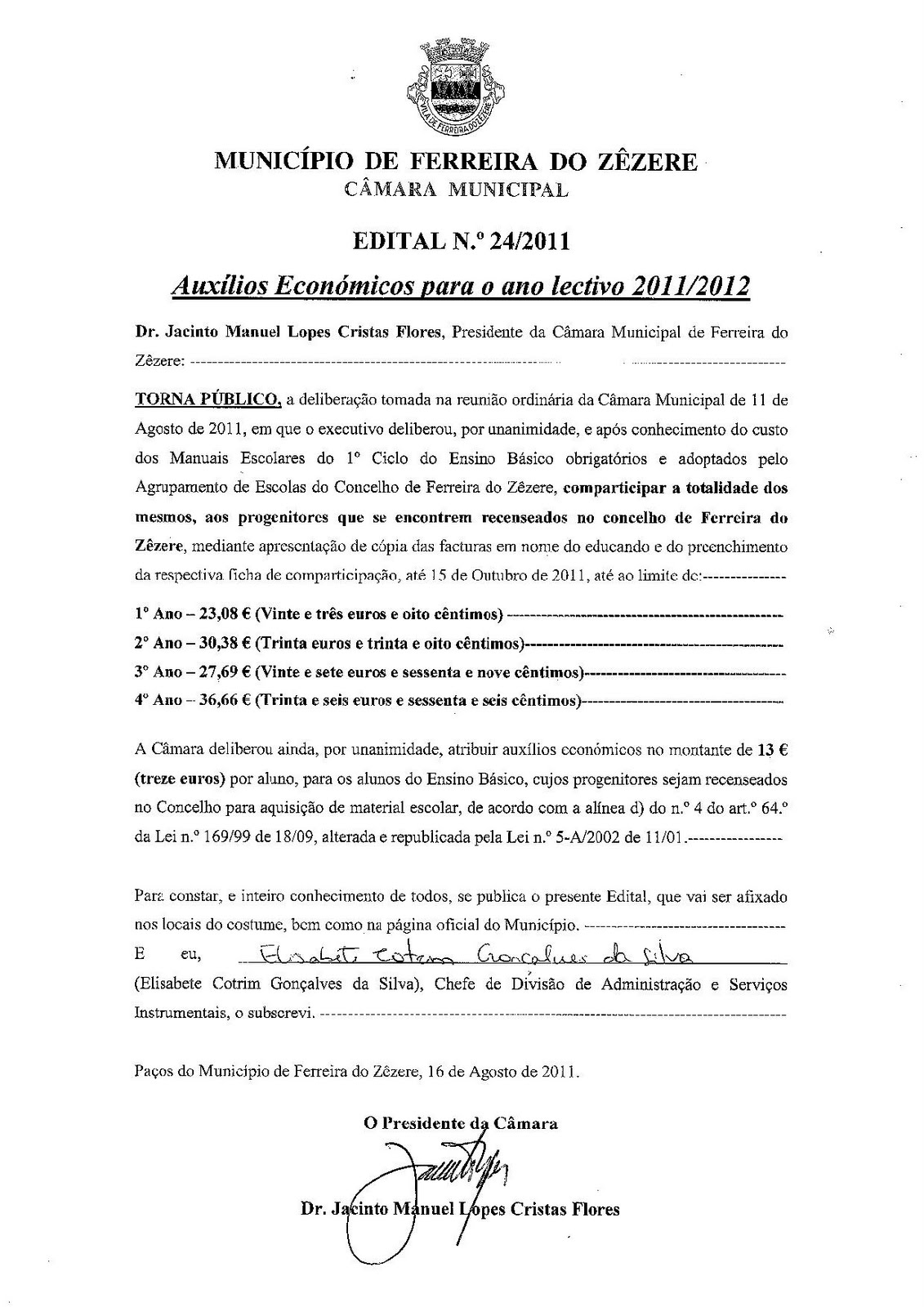 A Câmara Municipal de Ferreira do Zêzere deliberou na última reunião oferecer novamente os manuais escolares a todos os alunos do 1º Ciclo do Ensino Básico cujos encarregados de educação residam no concelho até um determinado limite publicado brevemente em edital.
