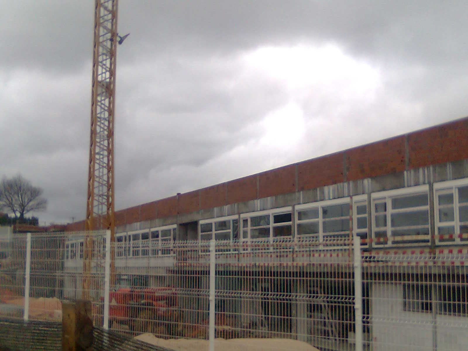 Neste momento já se pode ver que o edifício já está totalmente vedado com muros e rede e no interior começa a aparecer a caixilharia das primeiras janelas.