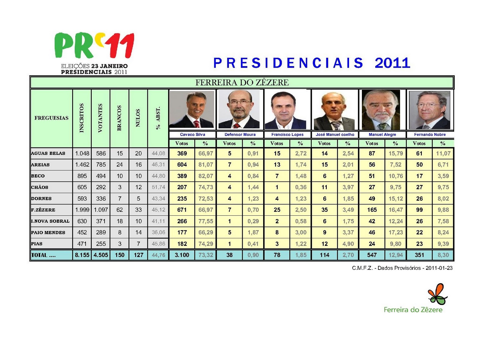 Presidenciais 2011 - Resultados em Ferreira do Zêzere
