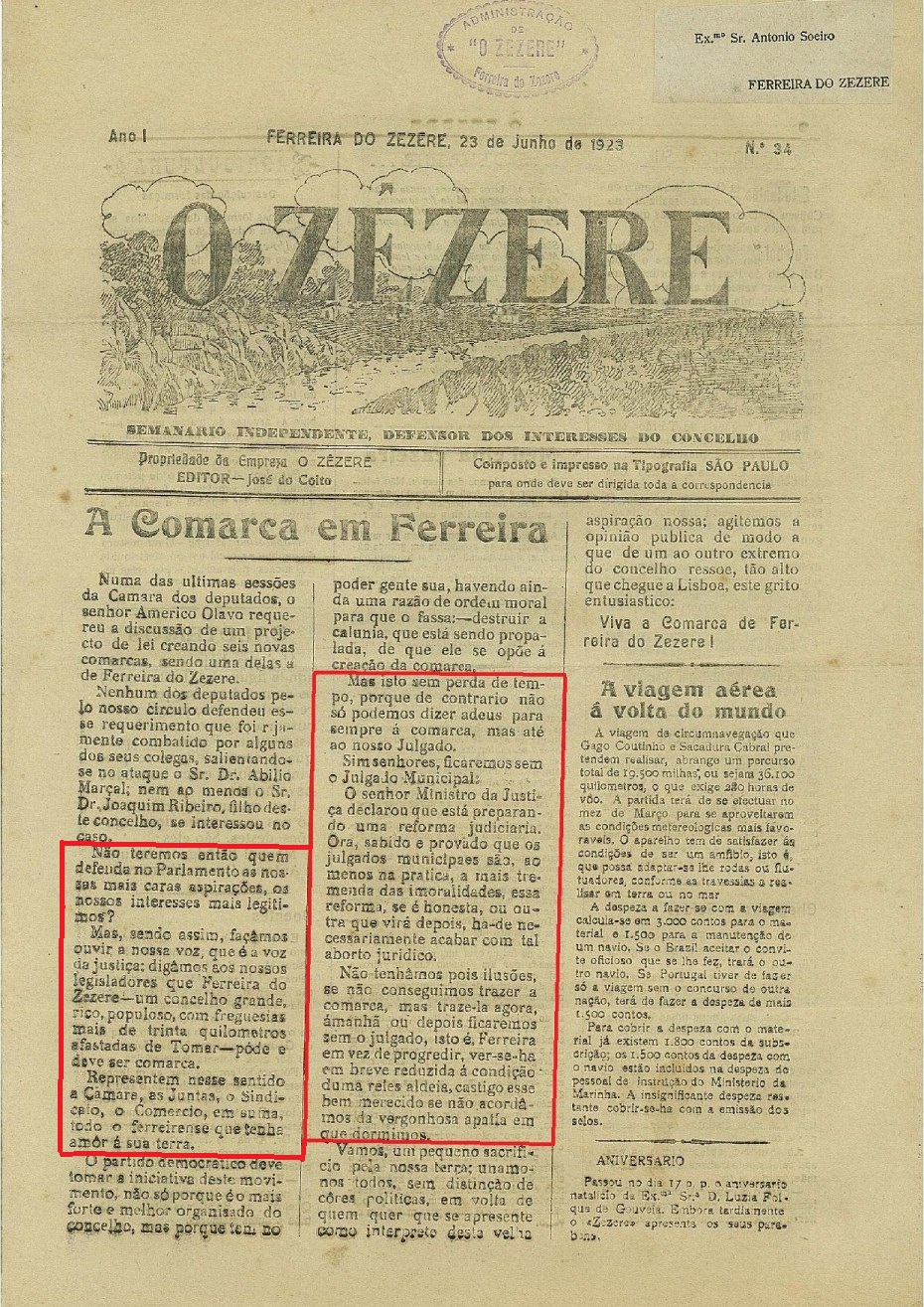 Da ordem de trabalhos destacou-se o ponto 8 com uma moção de protesto dirigida ao governo pela intenção de encerrar o tribunal de Ferreira do Zêzere. Esta moção foi aprovada por unanimidade e vai ser enviada para conhecimento ao Presidente da República, Primeiro Ministro, Ministra da Justiça e outros intervenientes políticos e sociais portugueses.